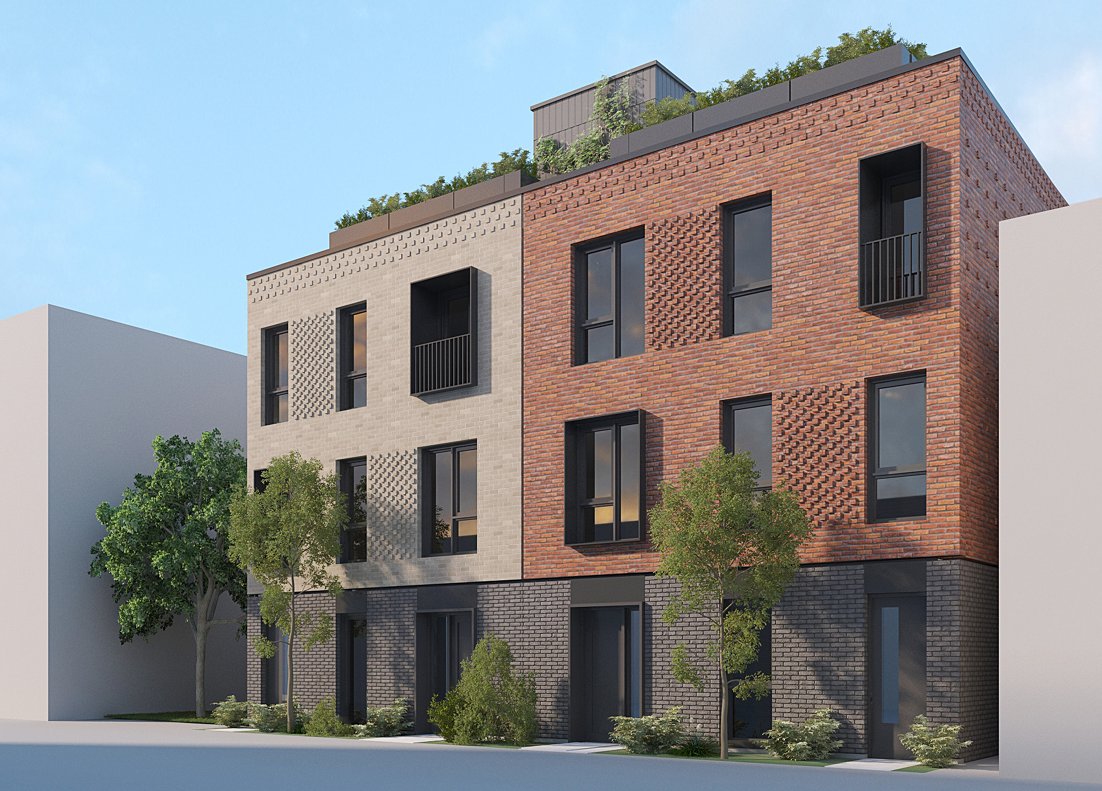 revêtement en briques de teintes complémentaires au secteur