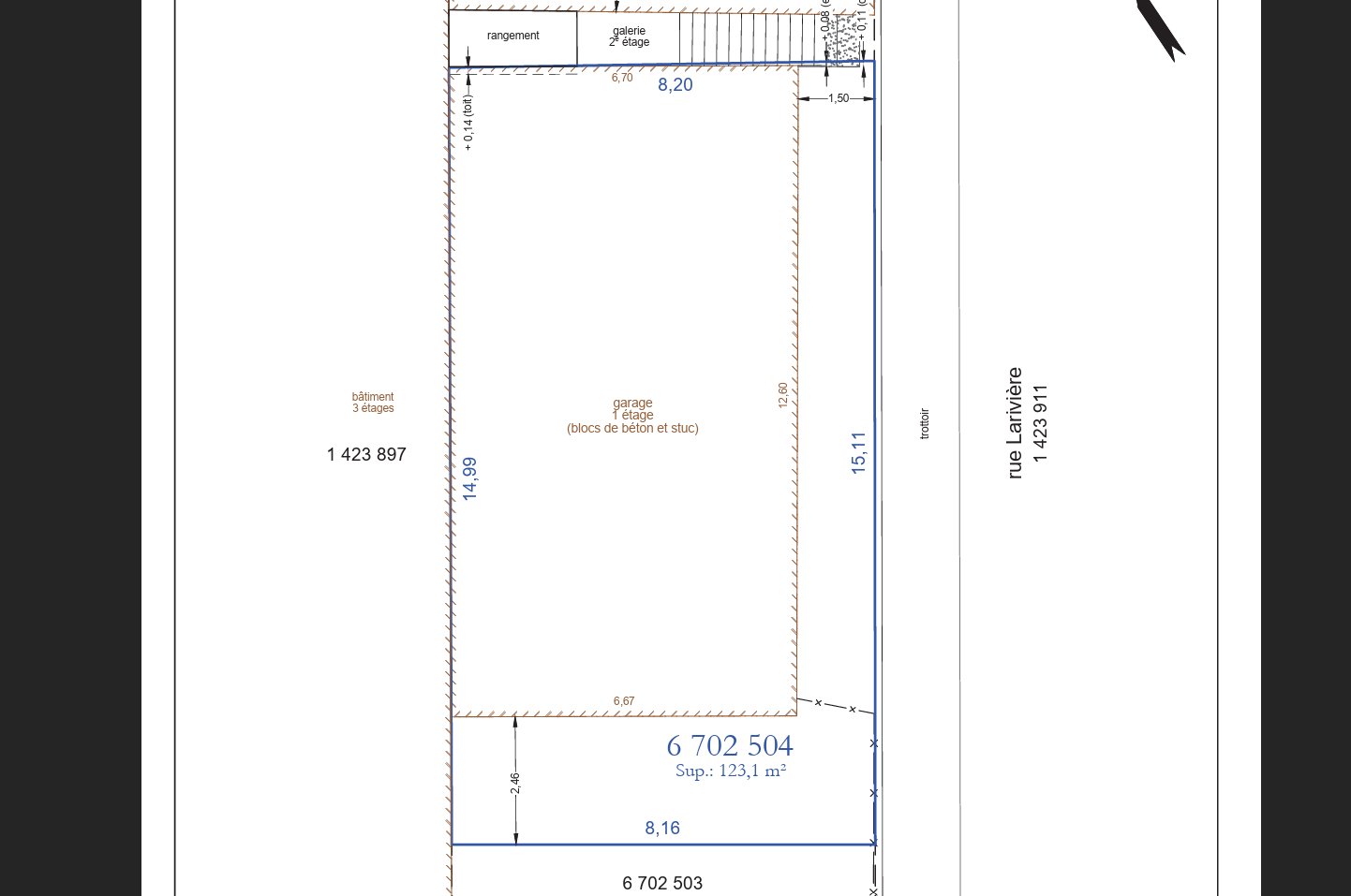carrés (±1 325 pi²) et comprend actuellement des garages